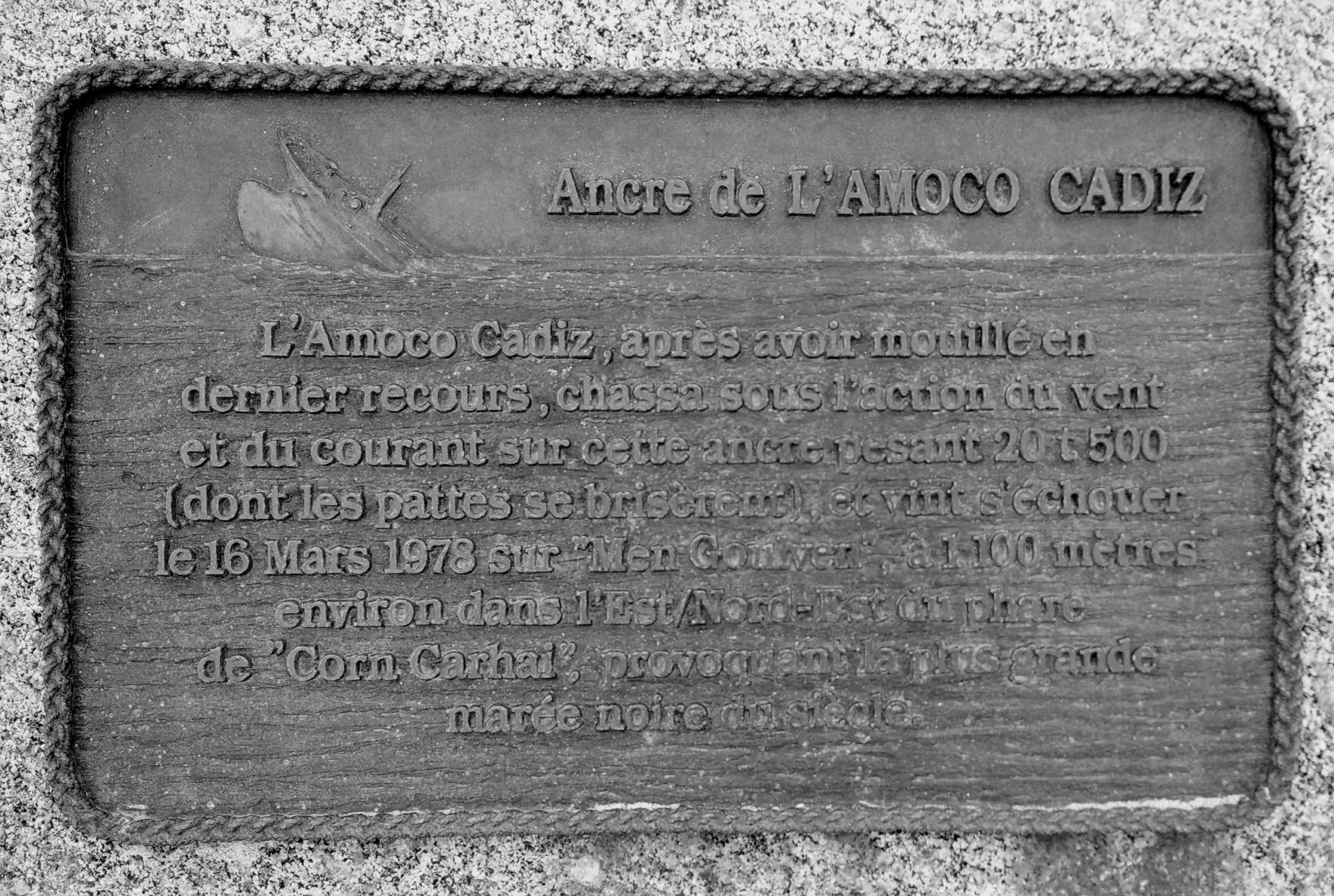 Die vorletzte Station unseres Ausflugs ist der Anker der Amoco Cadiz in Portsall. Wer aus der Leserschaft erinnert sich noch an die große Ölkatastrophe im März 1978? Hier gibt es die Fakten nochmal zum nachlesen: