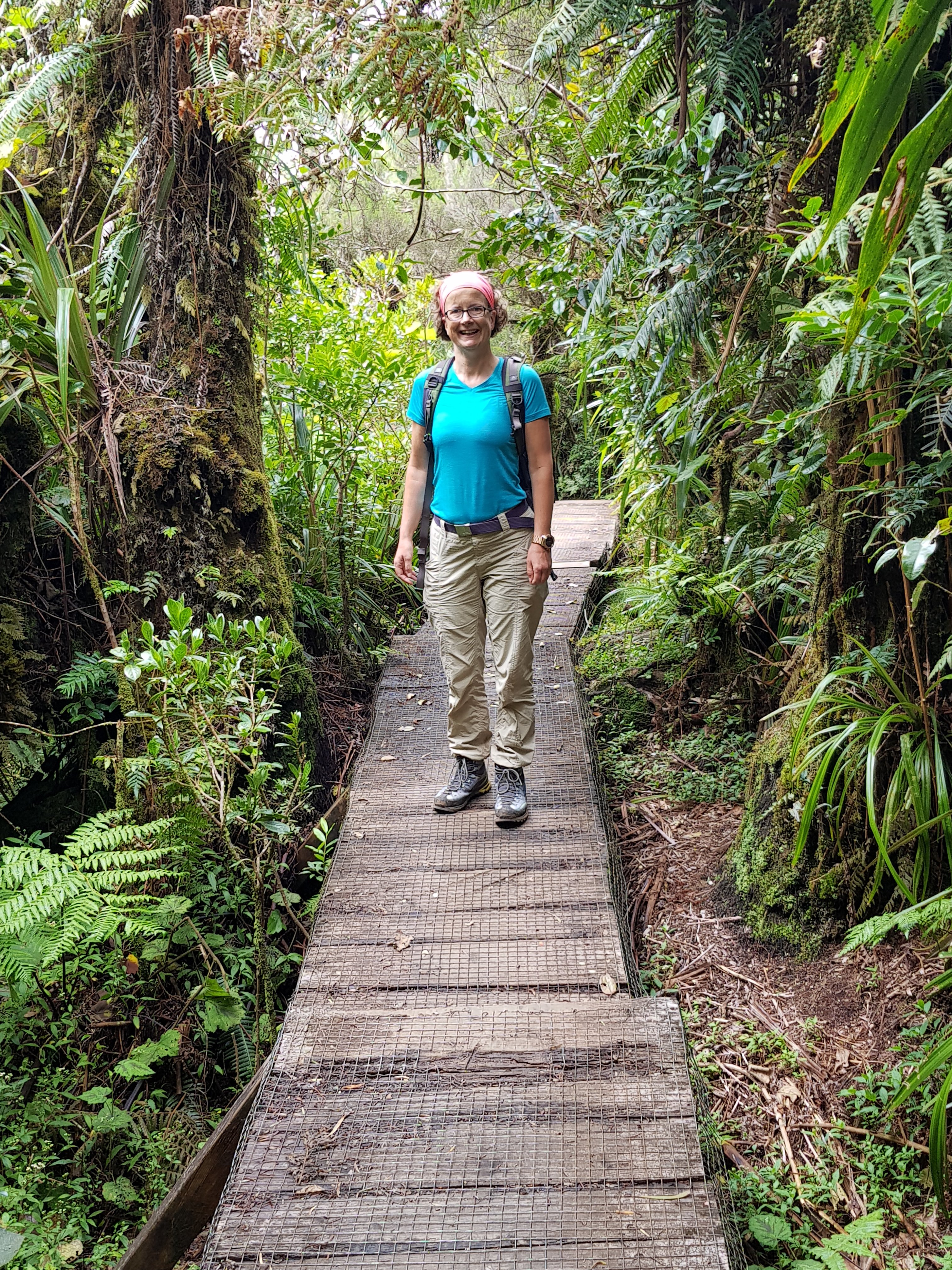 Obwohl der Weg fast durchgängig mit Brettern belegt ist, die obendrauf auch noch mit einem Drahtgeflecht versehen sind, und auch viele Treppen aus Holzstufen bestehen, war es am Ende dann doch kein Spaziergang. Die Stufen sind eher steil und vor allem die Stellen des Weges, die sehr Matschig sind haben dann doch unsere ganze Aufmerksamkeit und etwas mehr Kraft gekostet als gedacht.