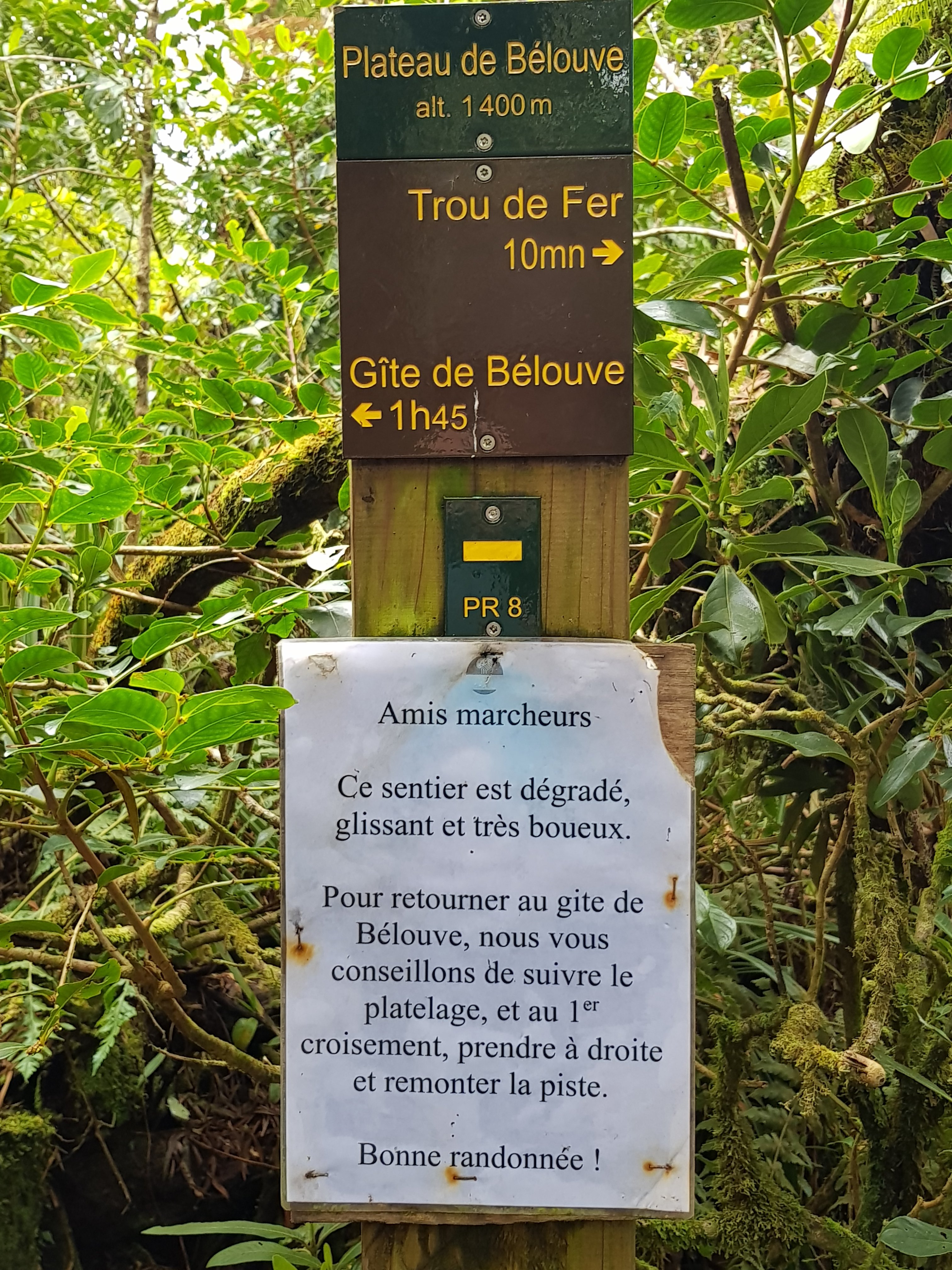 Der Wanderführer gibt den Weg mit etwa 12km an, für Hin- und Rückweg werden ca. 3h30 veranschlagt. Auch das Höhenprofil ist verglichen mit dem ersten Tag der Mafate-Wanderung eher flach. Wir haben uns daher auf einen Spaziergang eingestellt. Der Führer erwähnt auch, dass der Weg bei vorangegangenen Regentagen durchaus schon einmal Matschig sein kann.