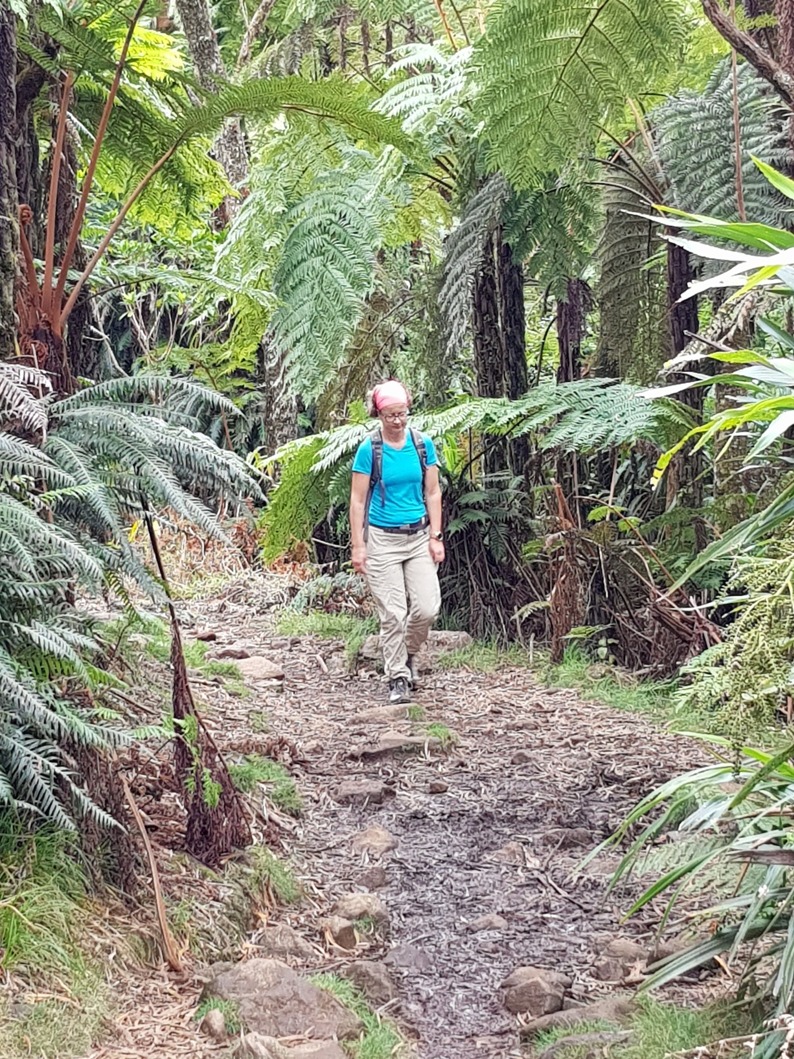 Das Ziel der Wanderung war der Aussichtspunkt zum „Trou de Fer“. Ich hatte mir das großartiger Vorgestellt und war ein wenig enttäuscht. Die Bilder im Reiseführer haben mehr versprochen. Dann war eben der Weg das Ziel, und der Weg durch den „Forêt du Nuage“ ist tatsächlich spannend, denn es gibt so viele Pflanzen zu sehen, die es bei uns nicht gibt.