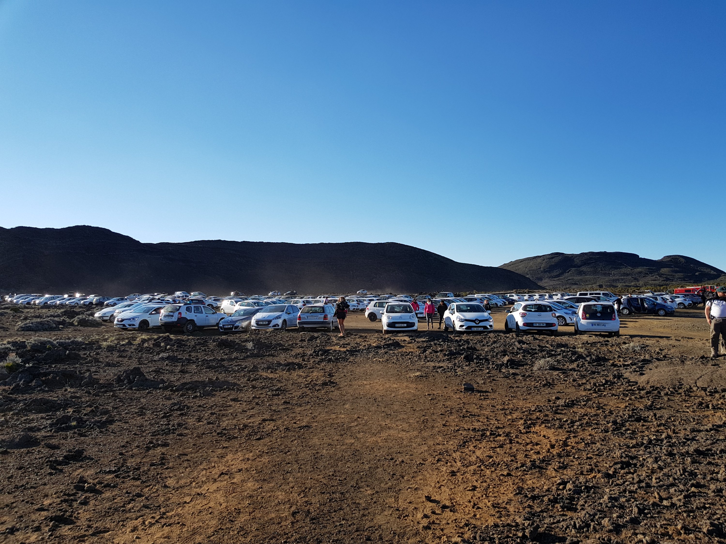 Zum Glück ist die Insel nicht so groß und auf der Seite auf der wir uns gerade befinden ist die Route National 4 vierspurig ausgebaut. Trotzdem sagt Goole, dass wir ca. 1 1/2 Stunden brauchen werden. Wir hatten uns überlegt, dass, wenn wir um 15 Uhr losfahren, wir mit etwas Glück spätestens um 17 Uhr oben sind. Und unser Plan ist voll aufgegangen! Auf dem Weg haben wir uns in einer Boulangerie noch zwei Sandwiches zum Picknick gekauft. Oben angekommen sind wir nicht die ersten: