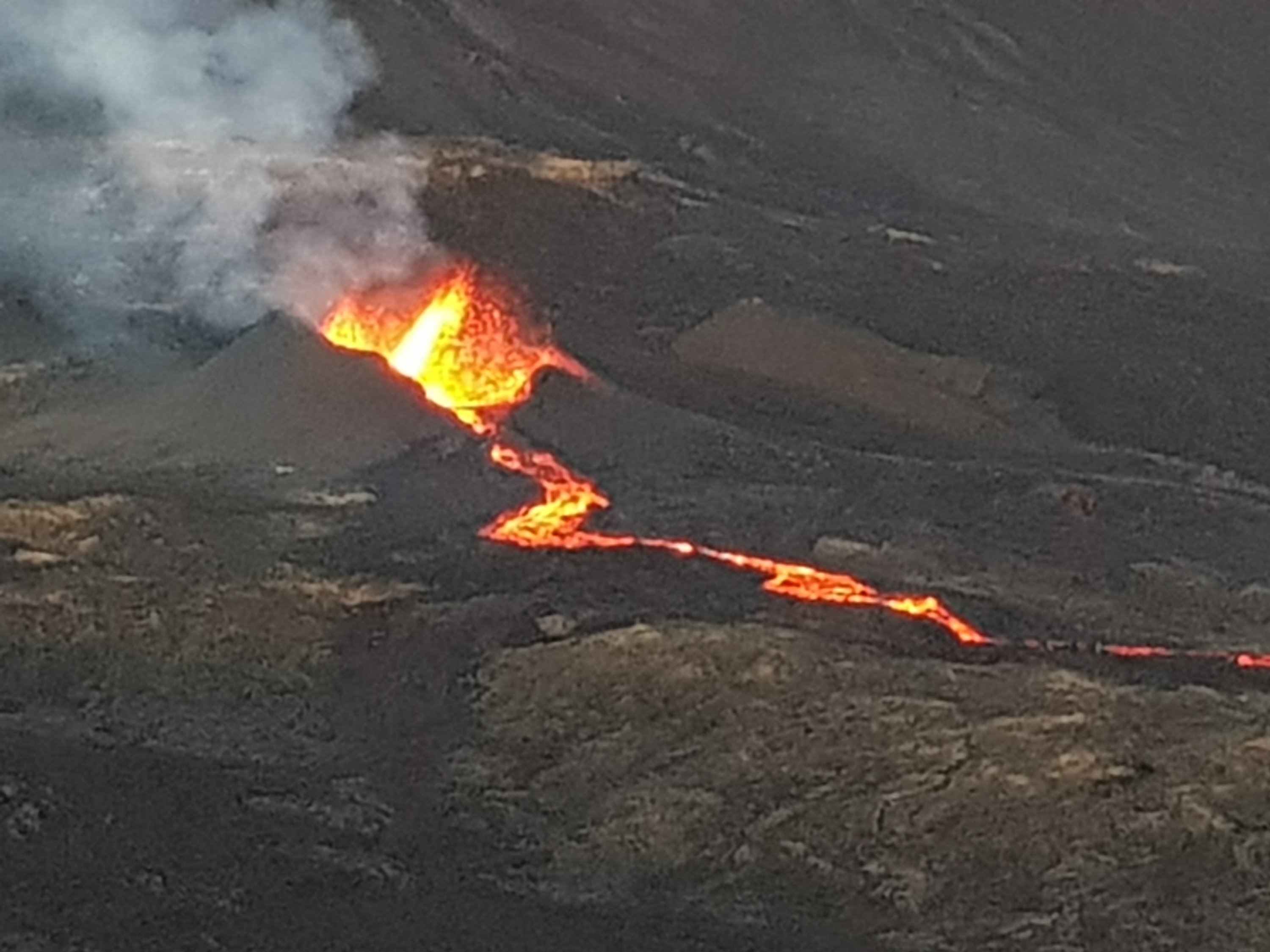 waren wir heute noch einmal auf dem Vulkan, der, wie ihr ja sicher alle inzwischen mitbekommen habt, seit ein paar Tagen wieder „pupst“.