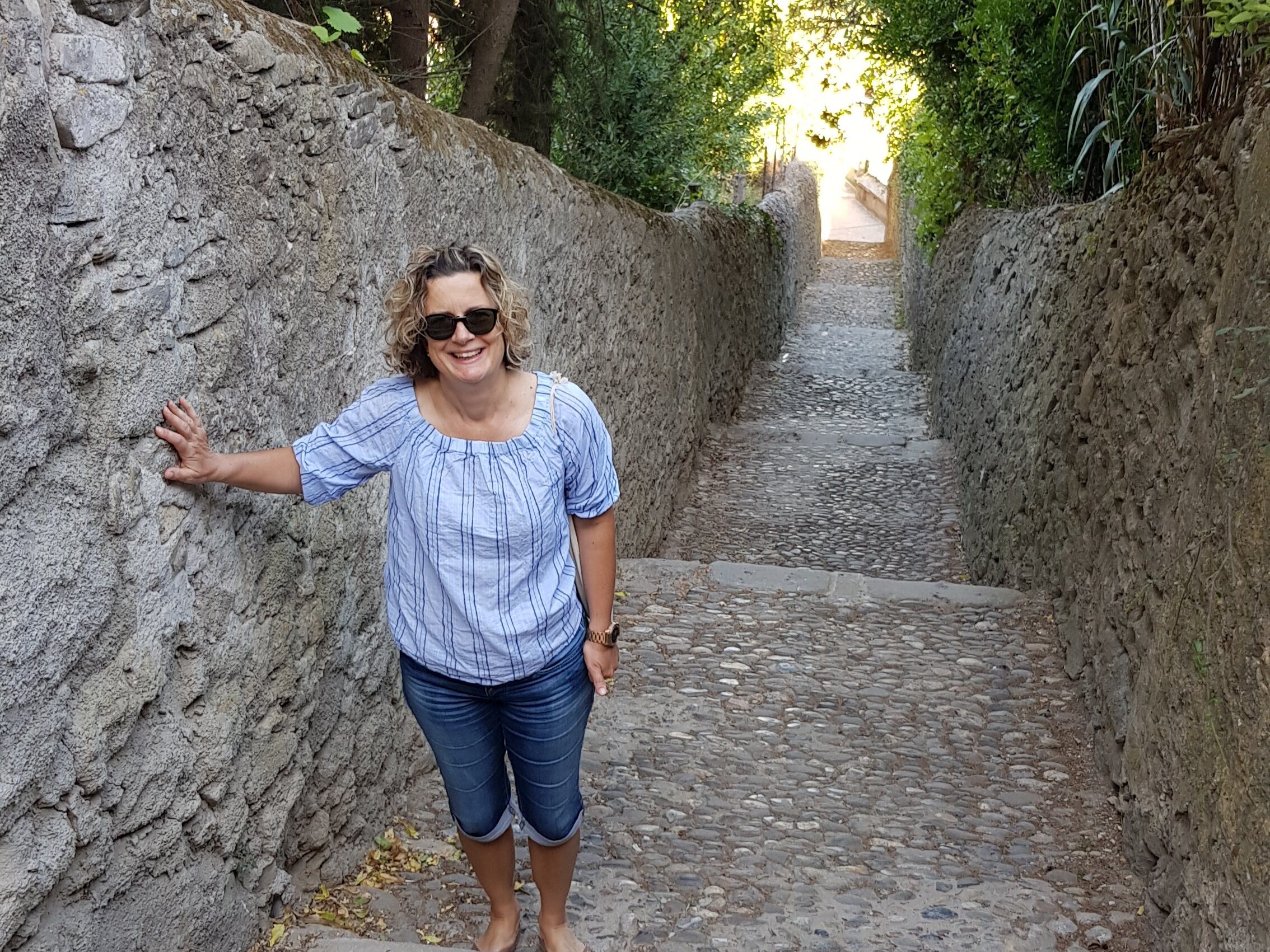 An unserem Ruhetag haben wir uns mit dem Frühstück viel Zeit gelassen und dabei die Aussicht auf die Cité genossen. Deren Besichtigung stand heute ganz oben auf unserem Programm und unsere Gastgeberin aus dem „Sur le quai“ hat uns einen super Tip gegeben, wie wir das Haupttor und die Touristen-Massen vermeiden können. Es gibt ein kleines Tor auf der Seite der Aude, welches nur über eine Steile Treppe erreichbar ist. Und tatsächlich verirrt sich dort selten ein Tourist hin…