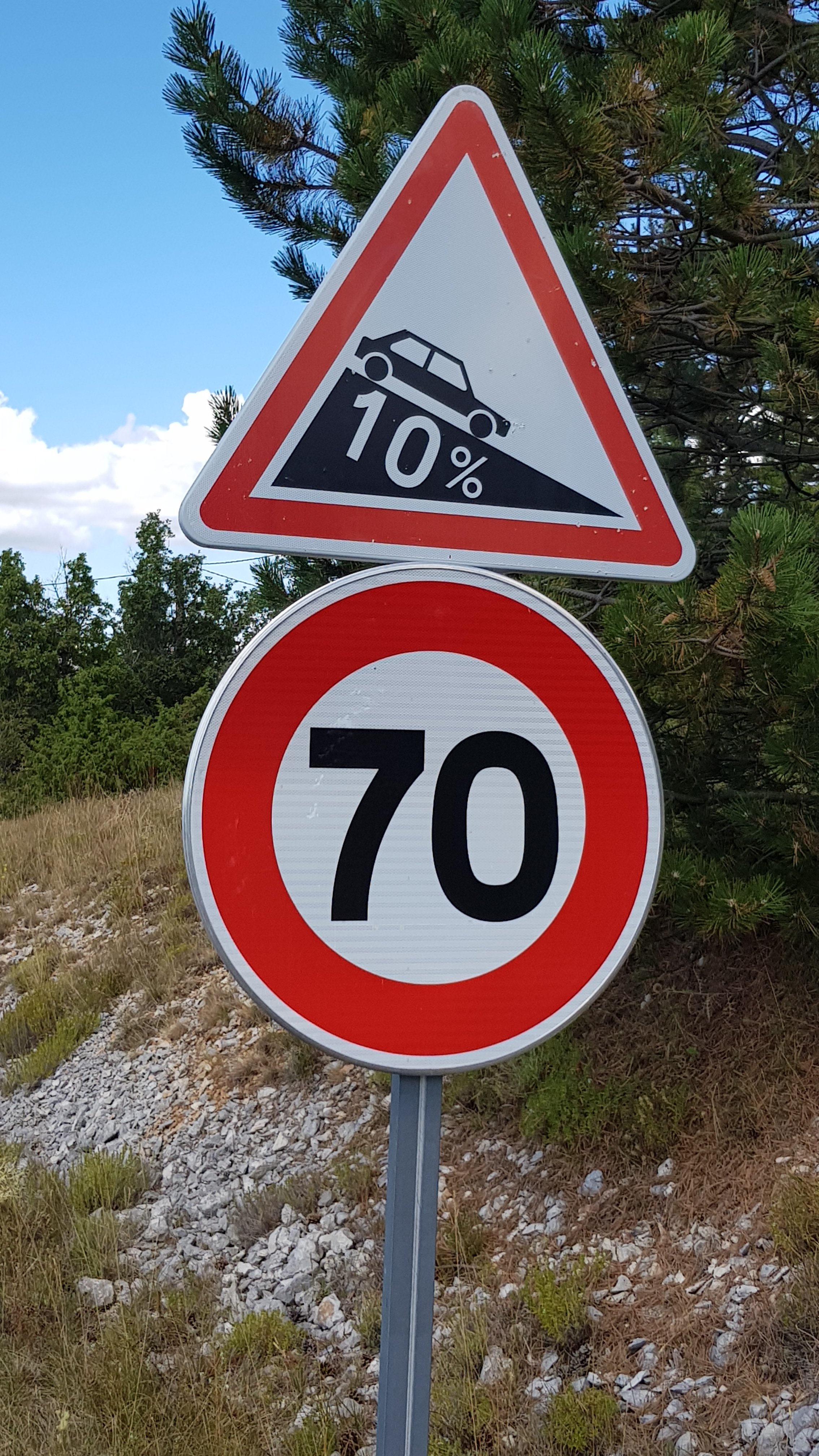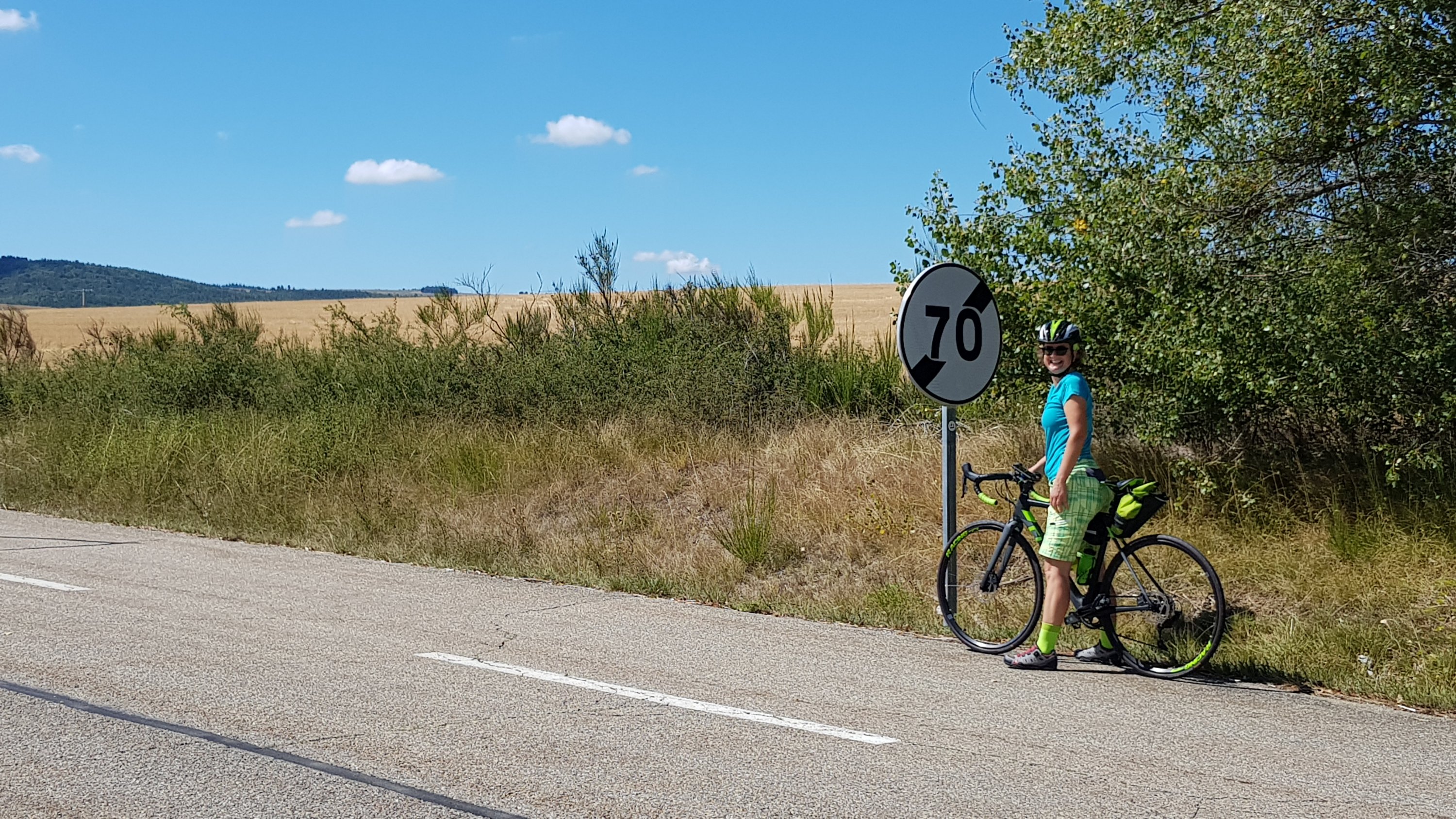„Nach der nächsten Kurve sind wir oben…“ – leider bein, denn der Kilometerstein sagt ab was anderes… 150 Höhenmeter sind zu überwinden und das bei beständig ca. 5% Steigung. Irgendwann kommt dann aber doch die letzte Kurve und wir haben es geschafft! Komoot sagt es waren 1010m – und da Sault deutlich tiefer liegt…