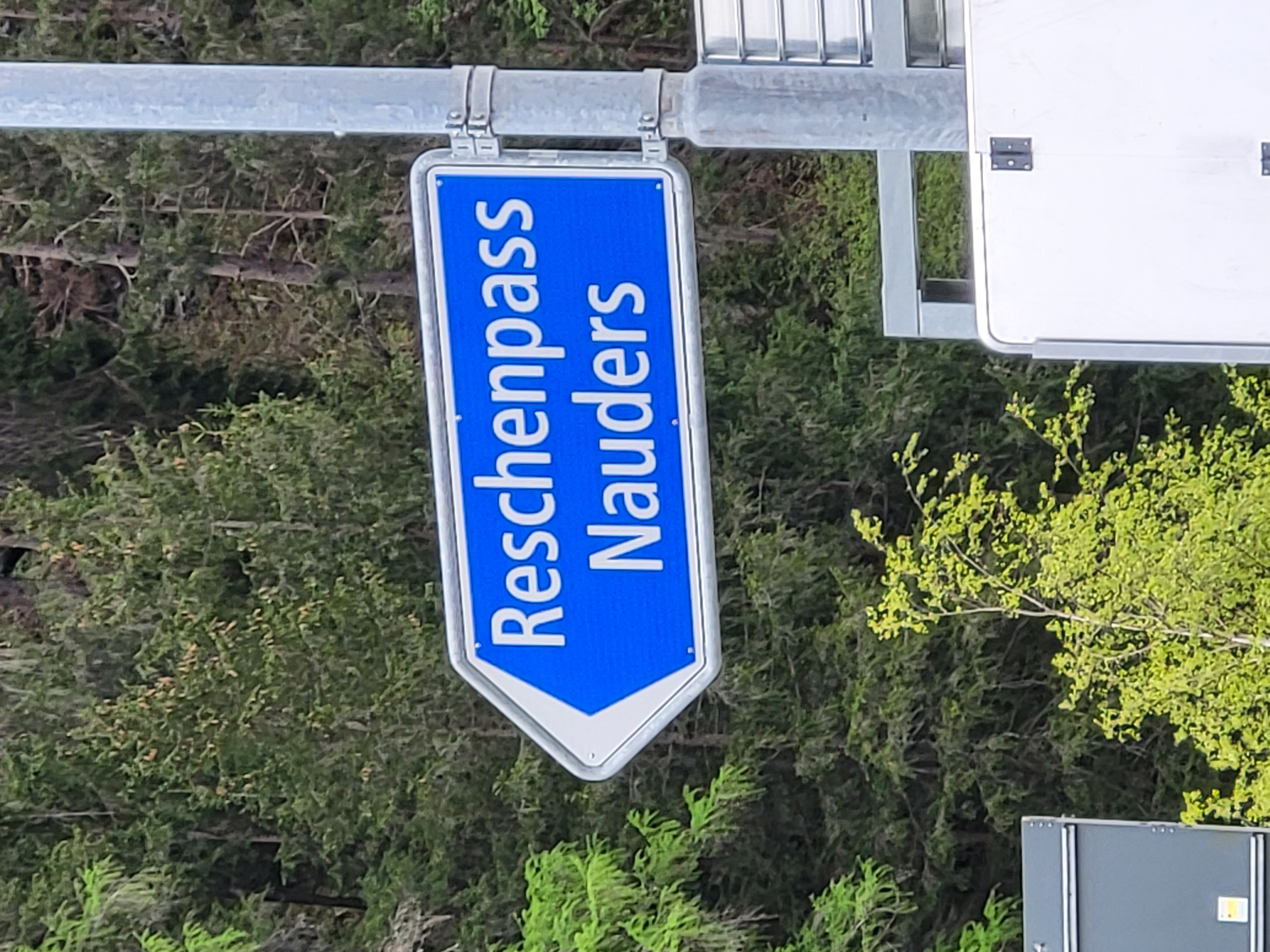 Nachdem wir gestern den Fernpass überwunden haben, steht heute der Reschenpass auf dem Programm. Nach dem Pass geht es dann am Reschensee vorbei und weiter nach Meran (325 m). Sabine kann es wohl gar nicht erwarten und ist schon um 6:30 Uhr unterwegs zum Bäcker. In unserer Unterkunft gibt es nämlich kein Frühstück, aber für Kaffee und Tee war gesorgt. Um kurz vor 8 Uhr packen wir die Taschen an die Räder und die Sonne scheint. Es ist so warm dass wir erst einmal eine Schicht wieder ausziehen müssen. Bevor wir losrollen ziehen wir aber alles wieder an, wenn die Sonne hinter den Wolken verschwindet und mit Fahrtwind ist es sonst noch zu kalt. Ein letzter Blick auf Pfunds…