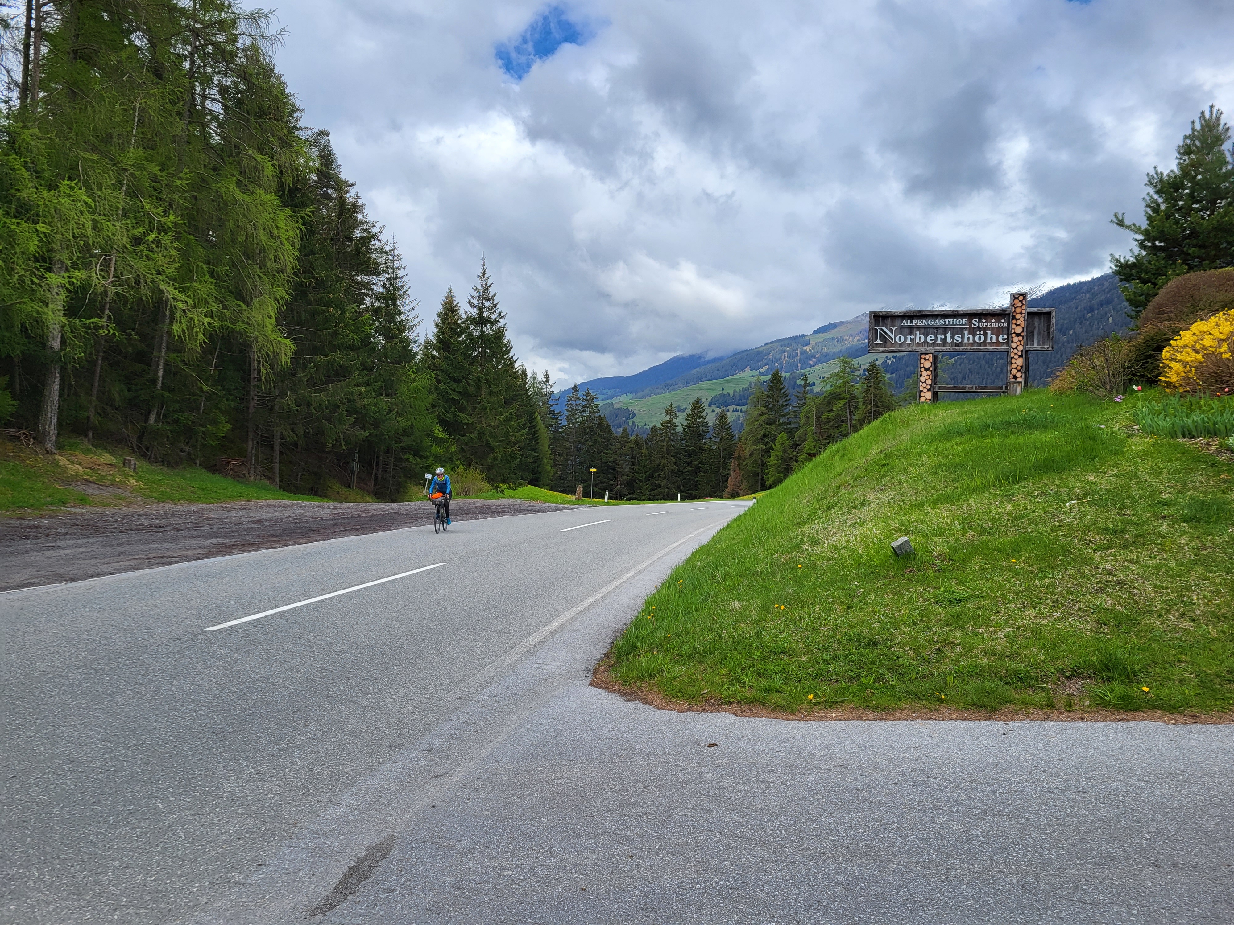 In der Schweiz sind ein paar Tunnel zu durchfahren, vor allem mit Gegenverkehr kein Spaß und vor allem extrem laut! In Martina treffen wir noch einen anderen Bike-Packer. Auch er ist auf dem Weg nach Reschen, aber wir sehen schon, dass er den Pass lange vor uns erreichen wird. Los geht’s über den Inn zurück nach Österreich und dann in 11 Kehren zur Norbertshöhe hoch…