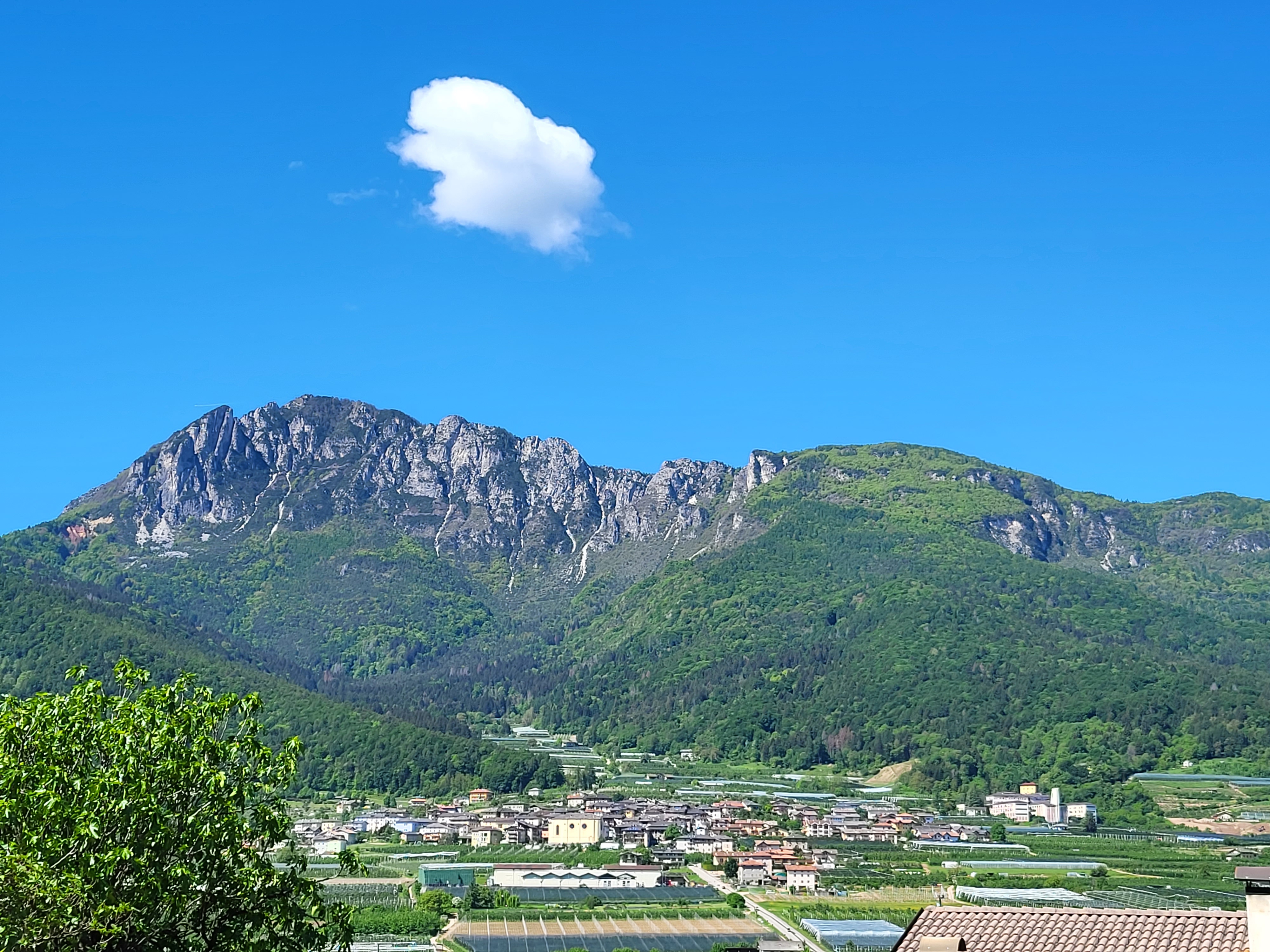 Nach Castello wären es noch einmal 150-200 HM mehr gewesen, das heben wir uns für morgen auf. Unser Zielort Bieno (815m) liegt am nördlichen Rand der Valsugana zwischen dem Monte Lefre (1305 m) im Süden und der Rava-Gruppe (2496 m) im Norden auf einem Moränenhügel mit herrlichem Ausblick. Im Ersten Weltkrieg verlief nach Beginn der österreichisch-ungarischen Frühjahrsoffensive die italienische Verteidigungslinie durch den Ort, weshalb Bieno schwer in Mitleidenschaft gezogen und nach dem Krieg fast vollständig wieder aufgebaut werden musste. Der Ort hat nicht viel zu bieten, zum Glück gab es aber ein Restaurant mit gutem und ausreichend Essen.