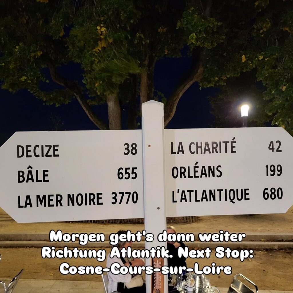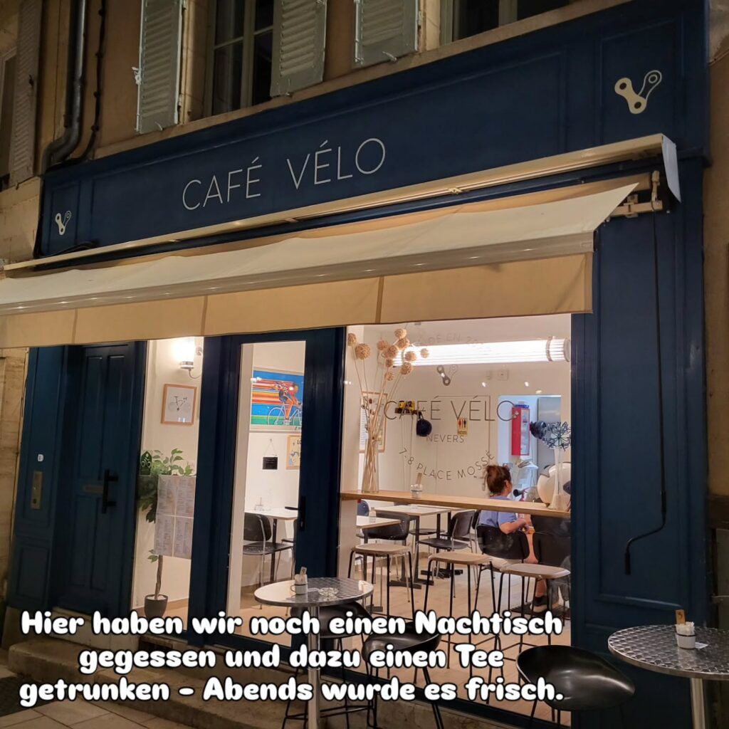 Abends gehen wir über die Brücke nach Nevers um uns die müden Beine bei einem Stadtbummel zu vertreten und natürlich um unsere hungrigen Bäuche zu füllen.