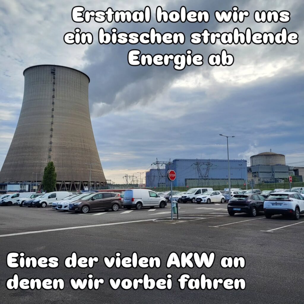 Von Cosne-Cours-sur-Loire geht es nach Châteauneuf-sur-Loire. Wie schon gestern folgen wir dem Loire-Radweg. Nachdem es gestern auf dem Weg nach Sancerre so warm war, ist das Wetter heute durchwachsen. Die Strecke ist wieder sehr abwechslungsreich, mal geht es ganz nah an einem AKW vorbei, mal über einen Wiesentrail direkt am Kanal entlang, oder auf Champagner-Gravel durch den Wald.