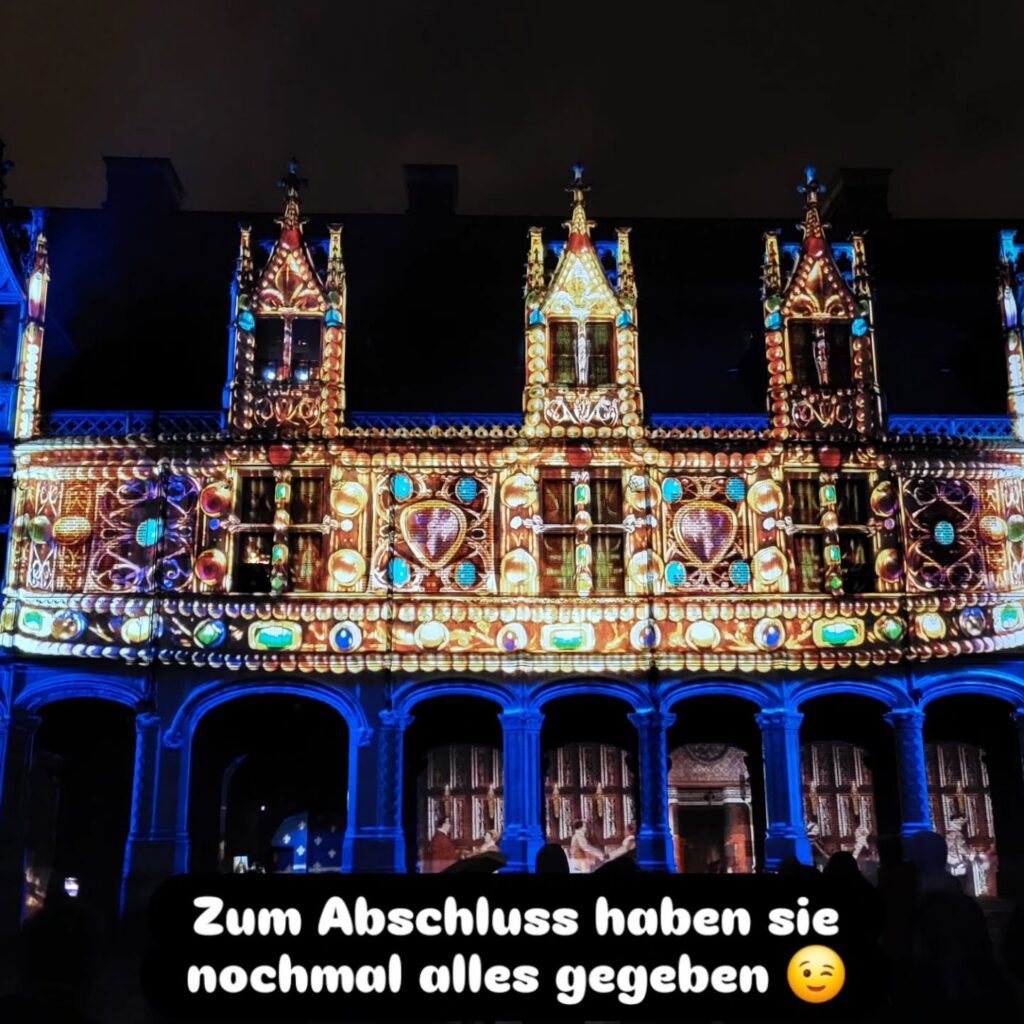 Abends sind wir noch einmal in das Schloss um das „Spectacle son et lumière“ anzuschauen, eine Multimedia Lichtshow im Schloss Blois. Vorher waren wir mit PEter Peter aus UK zum Abendessen. Peter haben wir Mittags zufällig vor unserem Hotel auf der Straße wieder getroffen. Er hatte sich ein Zimmer im gleichen Hotel gebucht. Es sollte nicht unsere letzte Begegnung bleiben…