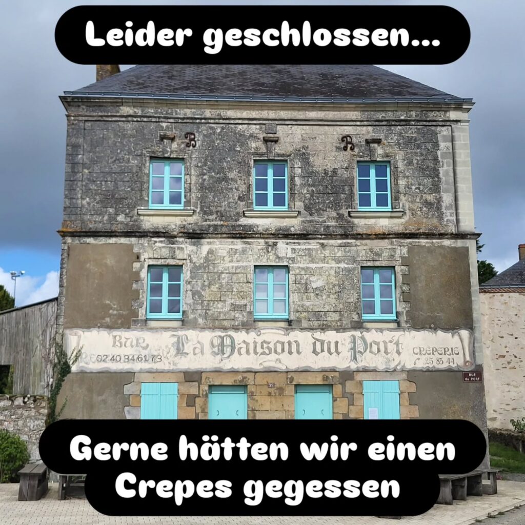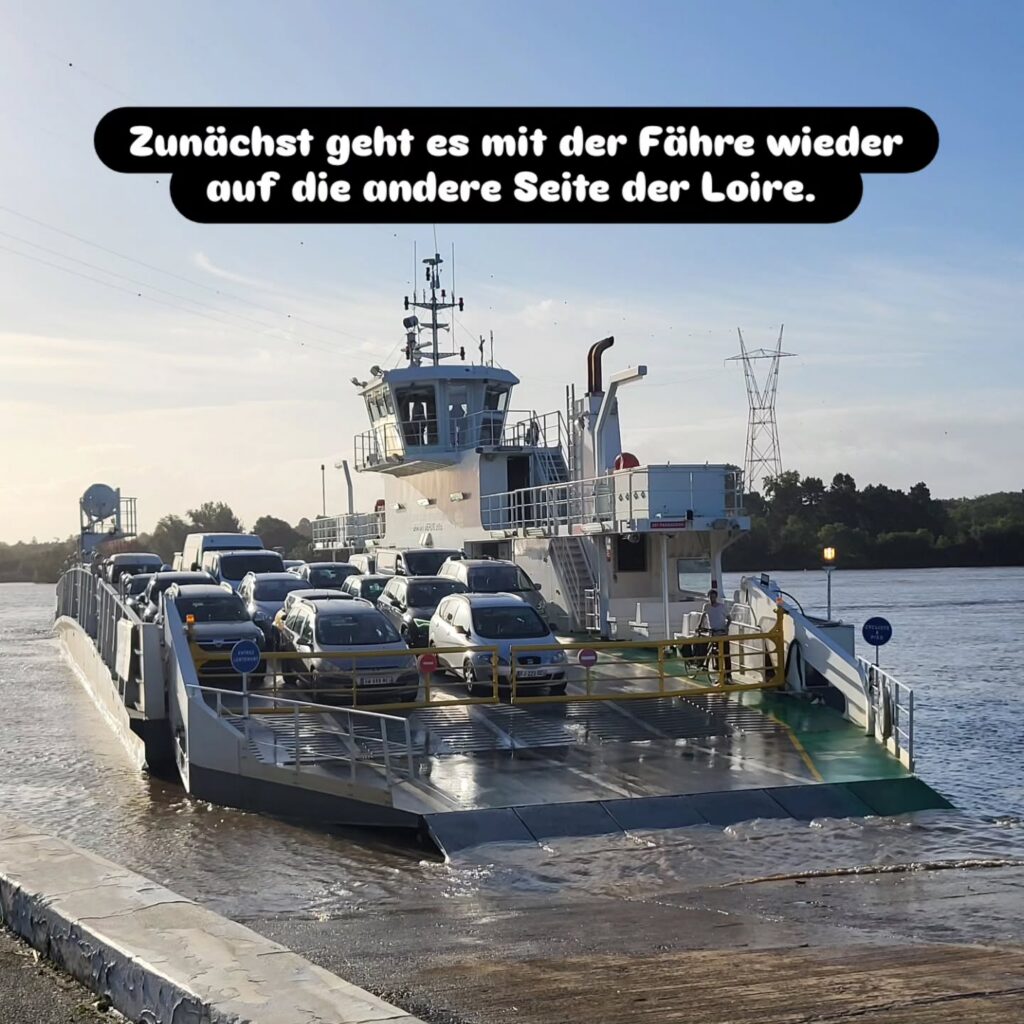 Mit der nächsten Fähre bei Pellerin überqueren wir die Loire zum letzten Mal und fahren nun wieder auf der Nordseite der Loire. Bis Saint-Nazaire gibt es jetzt keine Möglichkeit mehr die Loire zu überqueren. Und in Saint-Nazaire gibt es dann nur die große Brücke auf der wir mit dem Rad nicht fahren dürfen (und auch nicht wollen…).