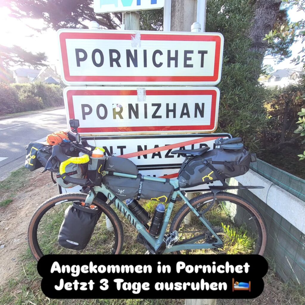 Als wir den Atlantik erreichen scheint dann aber wieder die Sonne und wir können unsere Regenjacken wieder wegpacken.Nach einer kurzen Pause in einem Café mit Blick aufs Meer nehmen wir die letzten Kilometer und Höhenmeter bis zu unserem Chambres d’hôtes in Angriff. Nach 15 Tagen und 1292km kommen wir an unserem Ziel an und freuen uns jetzt auf ein paar Tage (fast) ohne Fahrrad!