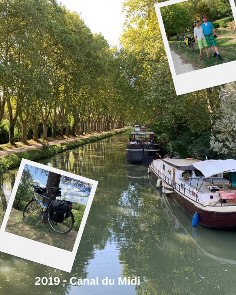 Unseren ersten Radurlaub sind wir 2016 noch ganz vorsichtig angegangen – 2-3 Tage radeln und dann zurück zum Auto. Das Setting damals: Trekkingräder, Satteltaschen und Lenkertasche mit Kartenmaterial und Bikeline-Radführer. 2019 sind wir im gleichen Setting am Canal-du-Midi in Frankreich gefahren – in 5 Etappen.