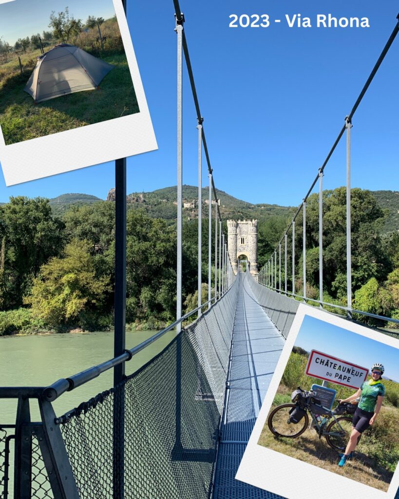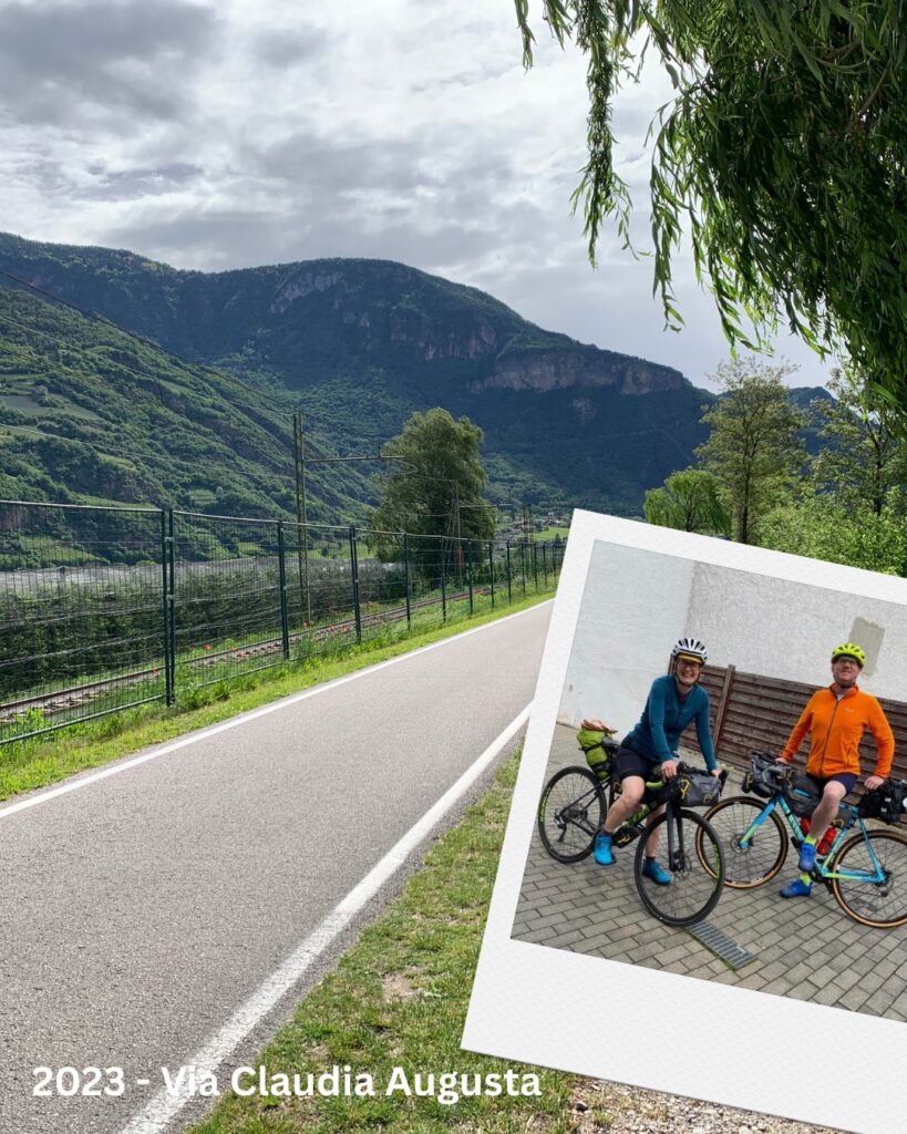 2023: Alpenüberquerung auf der Via Claudia Augusta durch die südlichen Voralpen und die Prosecco-Berge bis nach Venedig (10 Etappen). Und im Herbst ging es dann nochmal los – zum ersten Mal mit unseren neuen Gravelbikes und Zelt. wir sind den Rhone-Radweg von Vienne bis zum Mittelmeer gefahren und dann durch die Provence bis nach Manosque. Von dort mit dem Zug über Marseille nach Cannes um noch ein paar Tage am Meer auszuruhen.