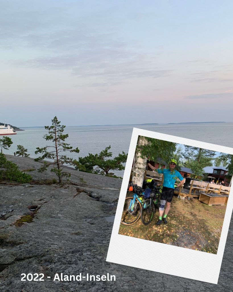 2021 sind wir dann zum ersten mal im Bikepacking-Style auf Tour gegangen – von den Dolomiten bis Maribor in Slowenien (6 Etappen). Übernachtet haben wir auf dieser und den nächsten Radreisen noch in Hotels. 2022 ging es über die Alandinseln zwischen Schweden und Finnland – 5 gemütliche Etappen und viele Fährfahrten.